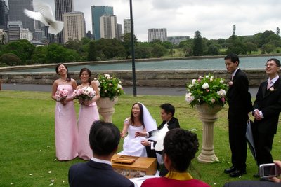 The ceremony was held at the Botanical Gardens, with the Harbour Bridge and Opera House as a backdrop!