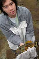 Muffin caught a few fishes in a short amount of time during our last visit to Mollymook. The leatherjacket was very tasty -- it was a female, with eggs :D We also cooked a wrasse that we caught. Wrasses taste quite fishy so they need to be cooked with a stronger tasty gravy ... like maybe tomato-based stew, or black beans and soy, if done Chinese style. The leatherjacket flesh has a very nice springy texture ... best grilled or fried to a crisp!