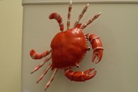 wallets made out of old Japanese manga; a crab fridge magnet, and some table cloth type thing.