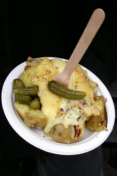 Never has a bunch of grilled potatos, gherkins, melted cheese (scraped off a huge