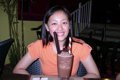 Cami and her chocolate beverage